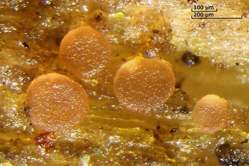 Knopfbecherchen, Fadensporiges Knopfbecherchen, Blassorangefarbenes