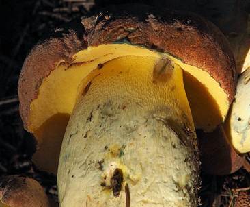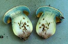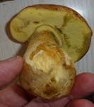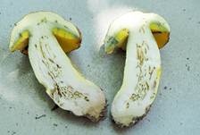 nur noch im Stielrandbereich zitronengelb verbleibend, fest, hart, blauend