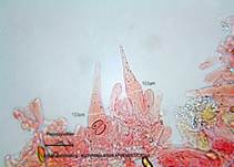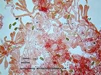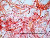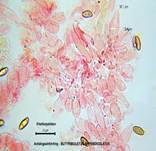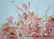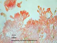 Mit Kalilauge (KOH) im Fruchtfleisch orangerötlich bis intensiv rot. |