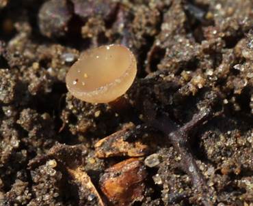 kahl. Becher anfangs kugelig, später becherförmig, alt scheibenförmig
