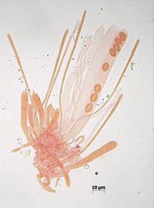 kernig. Asci 130-160 x 8-12 µm, teilweise 2-reihig, basal dünnstielig.