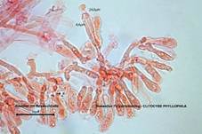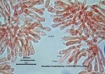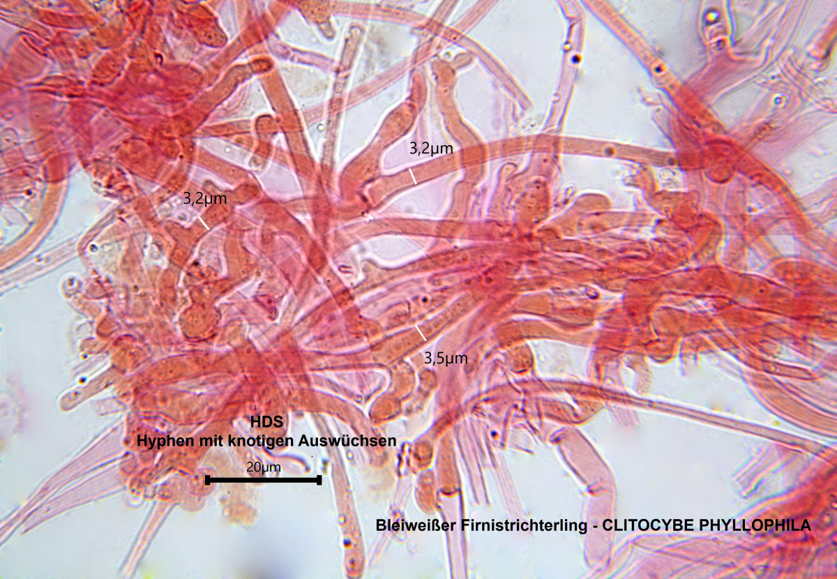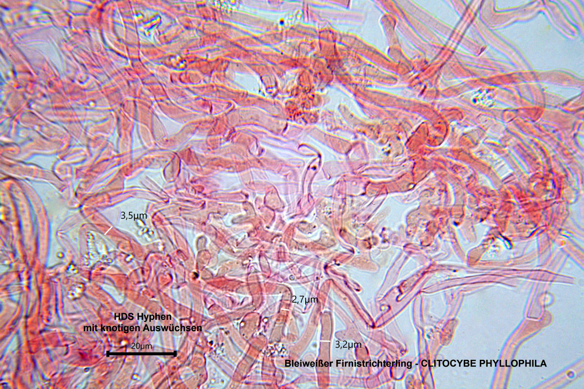 Schnallen. Hutdeckschicht ca. 1,5-5,5 µm breit, mit stark verflochtenen