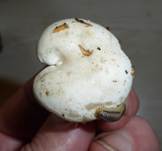 weißlich bereift, sonst weiß überfasert, meist glatt, voll, oft gekrümmt,