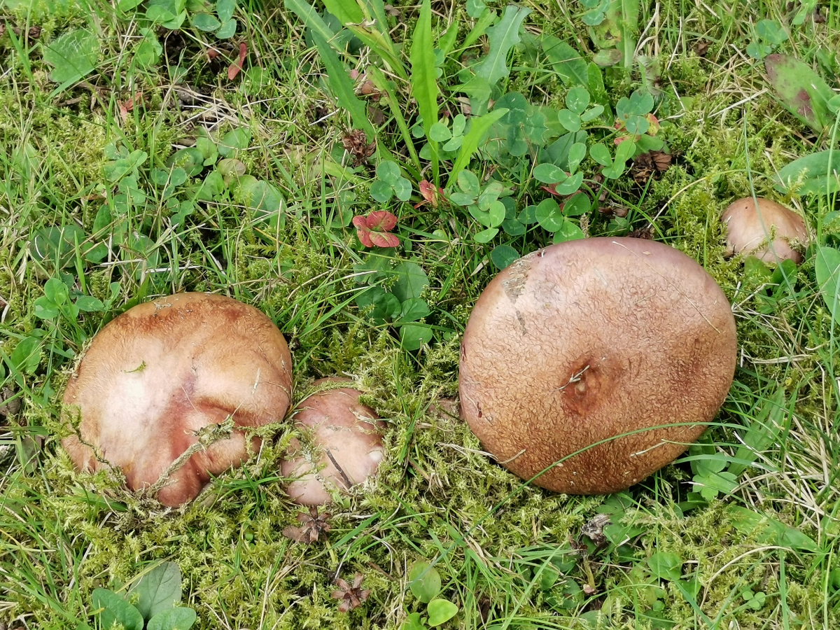 cm Ø, ockerbräunlich, rötlichbraun, rosabraun. Immer mit lila Ton, jung: schleimig, schmierig. Der Rand ist violett und