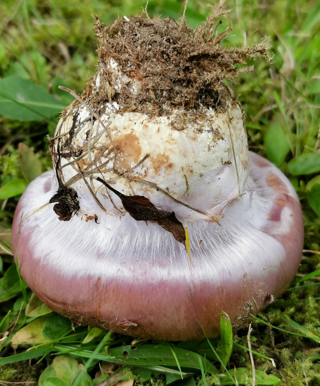 schmäler zugespitzt, Basis mit blauviolett-bräunlichen Velumresten