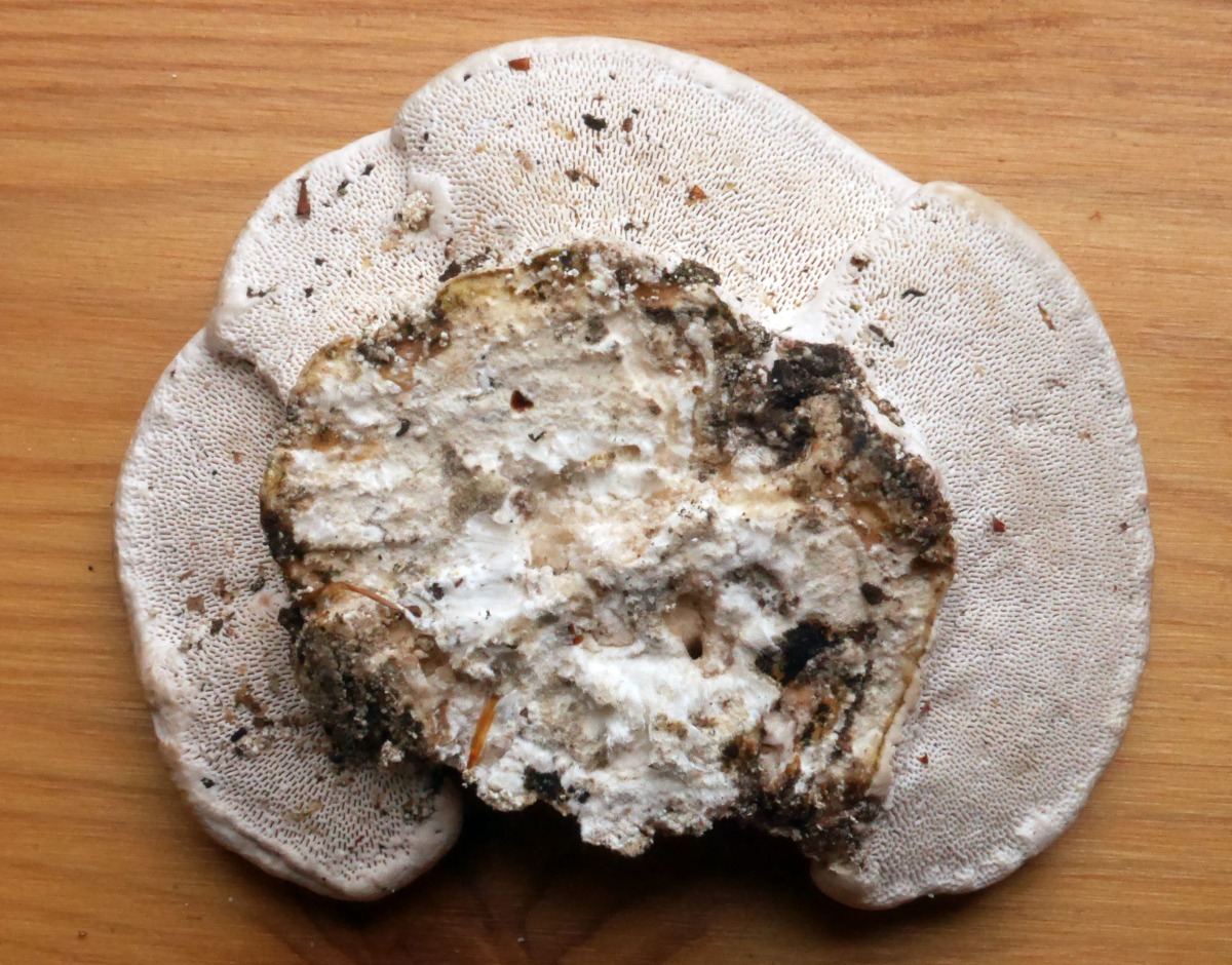 Zäh, korkig, kompakt, wie fast alle Trameten weißfleischig bis