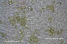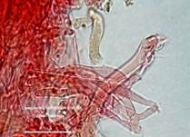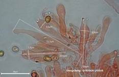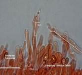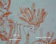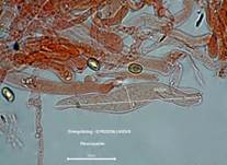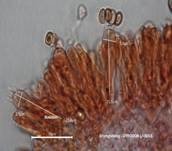 µm, elliptisch, in KOH braun. Basidien einsporig, seltener viersporig. Die