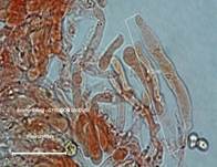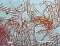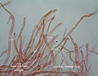 Kurzzellige Hyphen sind durch längere Hyphenbereiche getrennt. Hyphen 3-8 µm