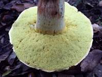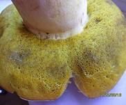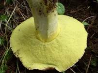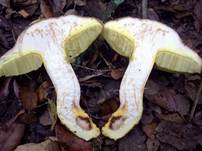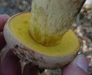 nicht blau verfärbend. Im unteren Stielbasisbereich oft intensiv gelblich mit