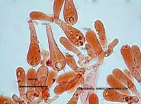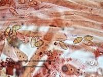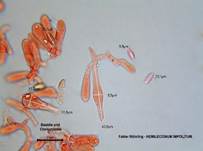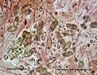 haselnussbraun, walnussbraun (10-16 x 5-6 µm, subfusiform, leicht