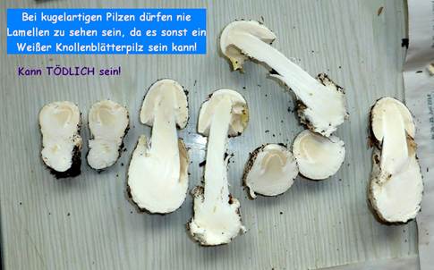 Lamellenansätze! Deshalb gilt bei kugelartigen Pilzen, immer durchschneiden