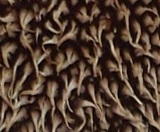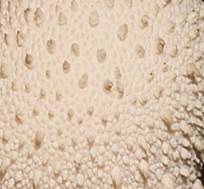 (APIOPERDON PYRIFORME): Dunkelbraune kleine kleiige Körnchen. +/- Netzmuster