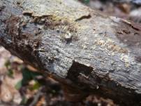 verrottetem totem, morschem Ästen, Stümpfen oder Stämmen, morscher Rinde,