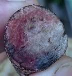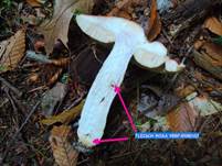 = Stielschuppen schwarz, Fleisch: Weiß, rötlich, später violett