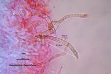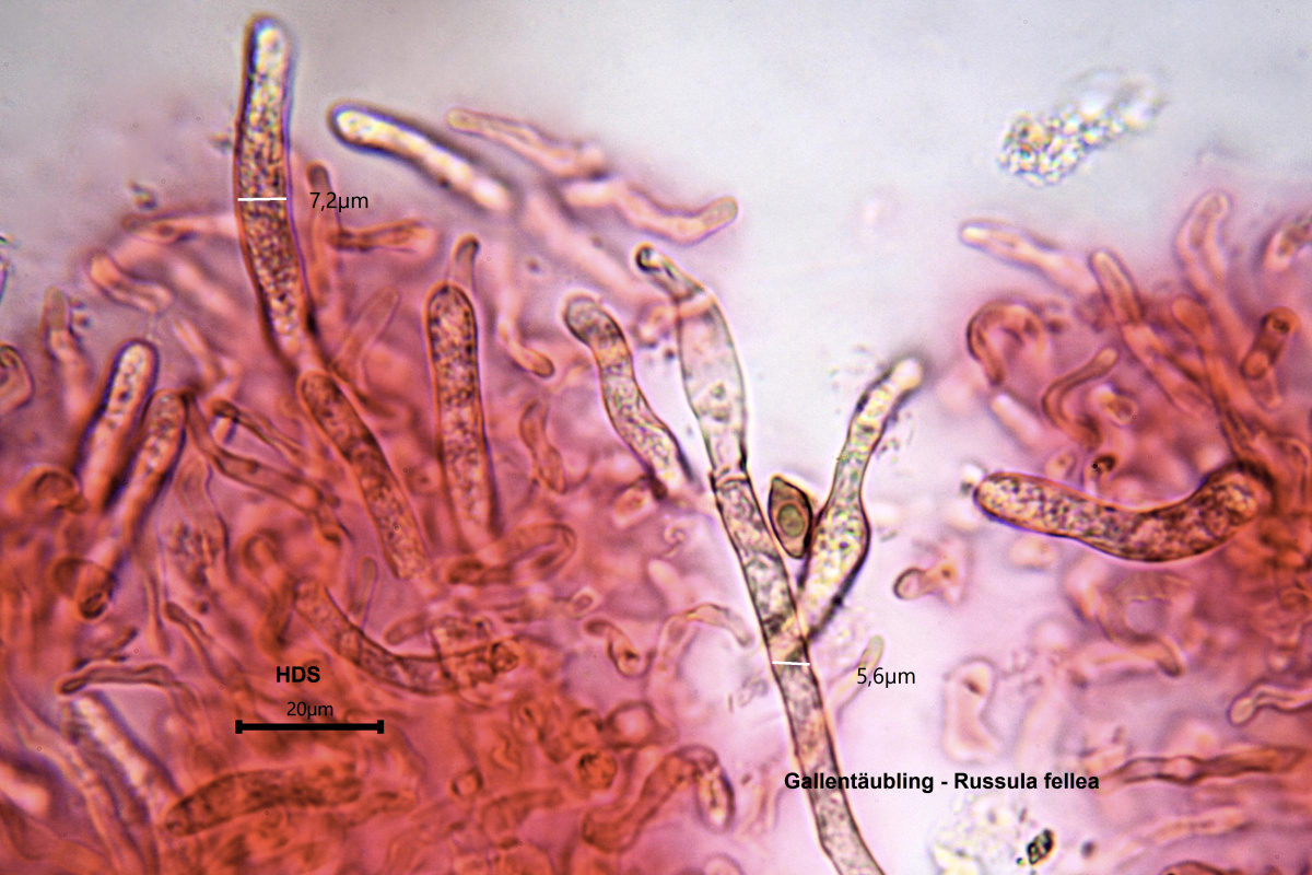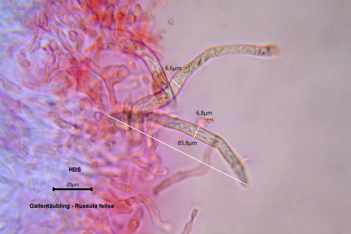 Hymenialzystiden 55-115 x 5,5-10 µm. HDS mit dünnen, stumpfen Haaren, viele