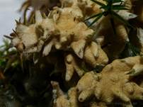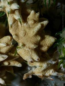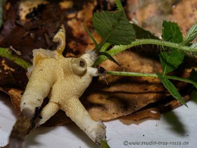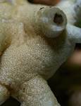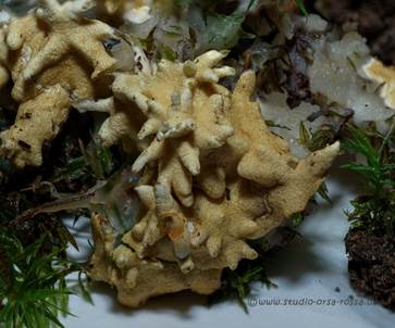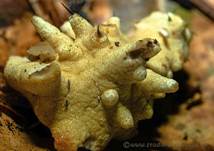 (Ostiolen), wachsartig glatt. Die Perithezien sind gelblich, sack- bis