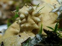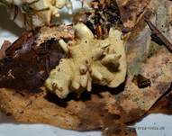 Traubenbasidie, Goldgelber Fältling, Milchweißer Zystidenrindenpilz, Schwefelgelber