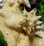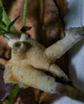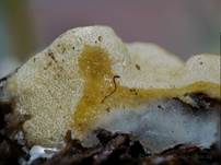 birnenförmig. Das Stroma ist bis ca. 0,5 mm dick, weißlich bis hellgelb. |