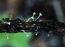 Kräuterstängel oder Totholz, Folgezersetzer, Frühling bis Herbst, selten. |