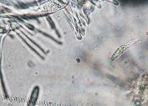 oft etwas gebogen, Porus +, Lugol + = blau, kein Haken, Paraphysen bis ca.