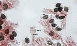 Schwarz (6,5-12,5 x 4-7 μm, Cheilozystiden 22-150 x 16-65 μm,