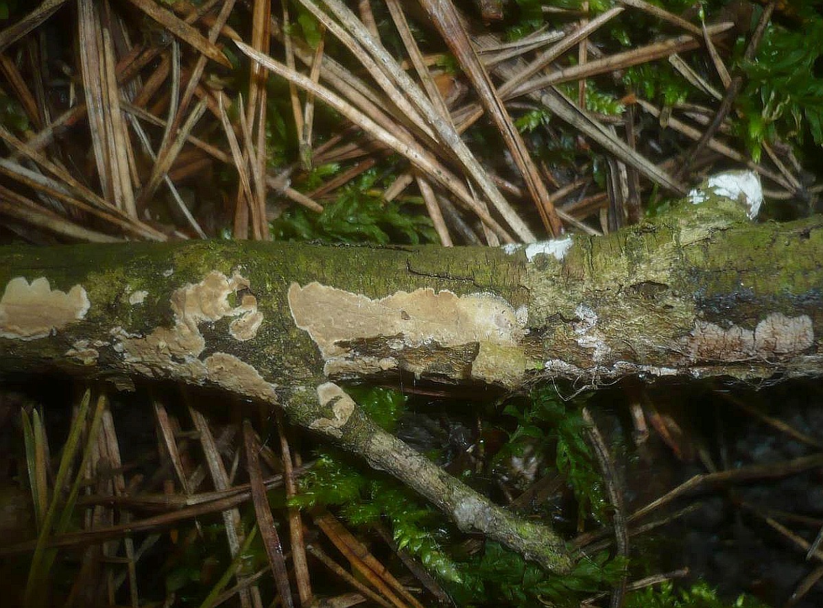 Wachskrustenpilz, Achtsporiger Vielspor-Rindenpilz, Lilafarbener