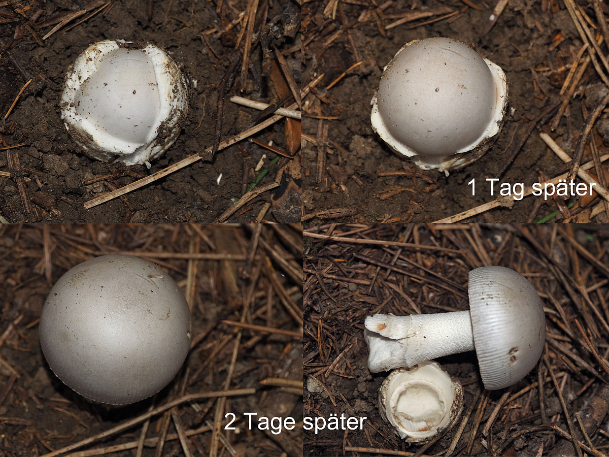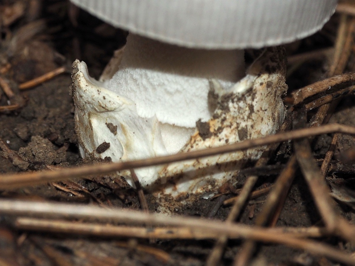 keine Knolle! Keine vollkommen reinweißen Lamellen, mehr einen leichten Warmton. Kein Warzengürtel (Perlpilz,