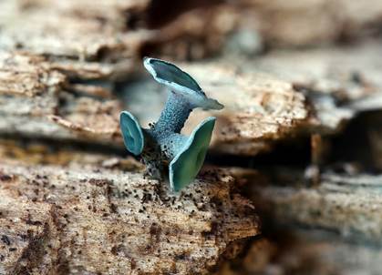 Grünspanbecherling, Grünblauer Weichbecherchen, Aschgraues