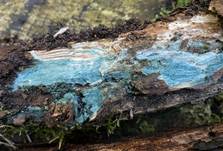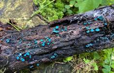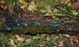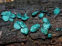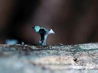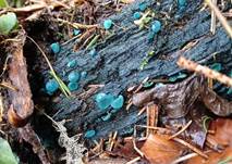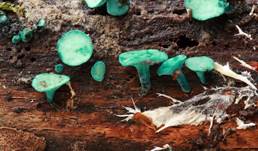 Das Myzel verfärbt Holz durch den Farbstoff Xylindein grün noch bevor