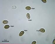 Braunlila (6-10 x 3,5 µm, ellipsoid,