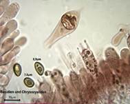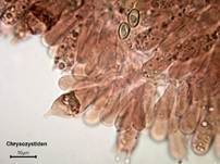 Cheilozystiden 25-37,5 x 5-10 µm, hyaline in KOH, Pleurozystiden 30-50 x