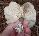 verdickt-aufgeblasen und mit weißem Myzel überzogen. |