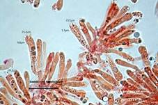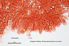 Hymenium häufig, im Trama selten. Terminalzellen glatt, apikal ohne