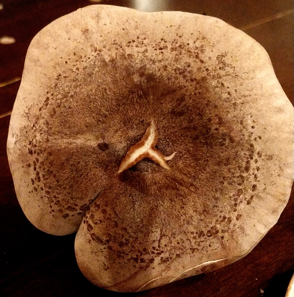 2-8 (11) cm Ø, graubraun mit konzentrischen Wasserflecken, Rand wellig,