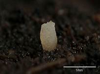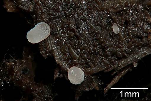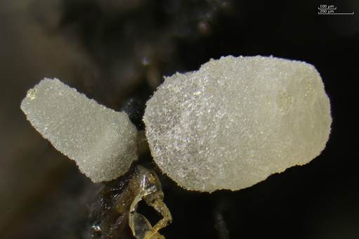 0,2-0,6 (0,8) mm Ø, weiß, später schmutzig-weiß bis gelblich,