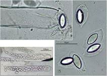 Asci 270-383 x 45-56 µm, zylindrisch-keulig, kurz gestielt, oben abgerundet,