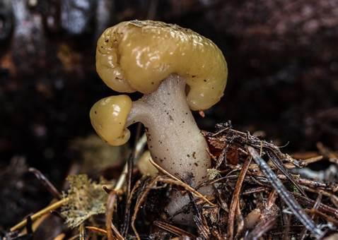 (mehr verdrehten Stiel), Sattellorchel, Dottergelbe