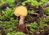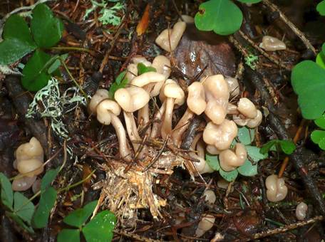 in Nadelwäldern auf Streuhaufen, oder an moosigen Stellen, Sommer bis Herbst,