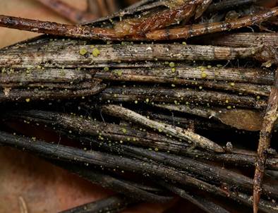 Auf Kiefernnadeln, Folgezersetzer, ganzjährig. |