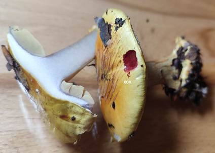 KOH an Hut- und Knollenrand blutrot, rosa bis rötlich im Fleisch. |