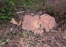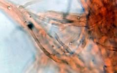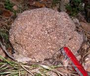 Wurzelgeflecht von Kiefern, seltener an anderem Nadelholz wie Fichte,