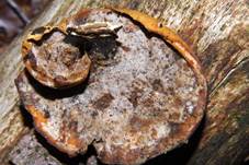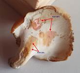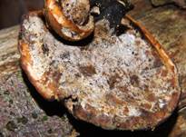 Mit KOH an Fleisch und Hut braunorange verfärbend. Poren, mit