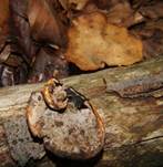 Skeletthyphen 2-5 µm breit, unseptiert, glatt, verzweigt, in KOH bräunlich bis hyalin, Hyphensystem dimitisch). |