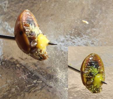 An lebenden und toten Marienkäfern entspringen, Myzel durchzieht das
