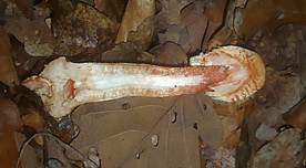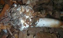 Bei jungen Safranschirmlingen kann die Stielbasis wie ein breiter