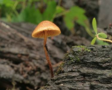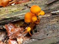 morschem totem Laubholze, gern Buche, seltener Nadelholz, auf Holzabfälle