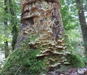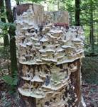 Nadelholzstämme oder Stümpfe, besonders gern an alten Kiefernstämmen,