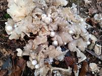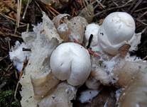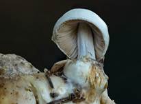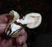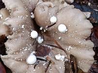 Auf Fruchtkörpern alter Pilze, gern Nebelkappen, Folgezersetzer, Herbst bis Spätherbst,