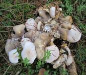 1-8 (10) cm Ø, weiß mit rosa Hauch, Mitte meist gebuckelt. Rand