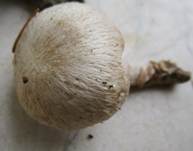 Scheide, später blass lederfarben, fest, rund, faserig, seidig, bereift, Basis verdickt. |